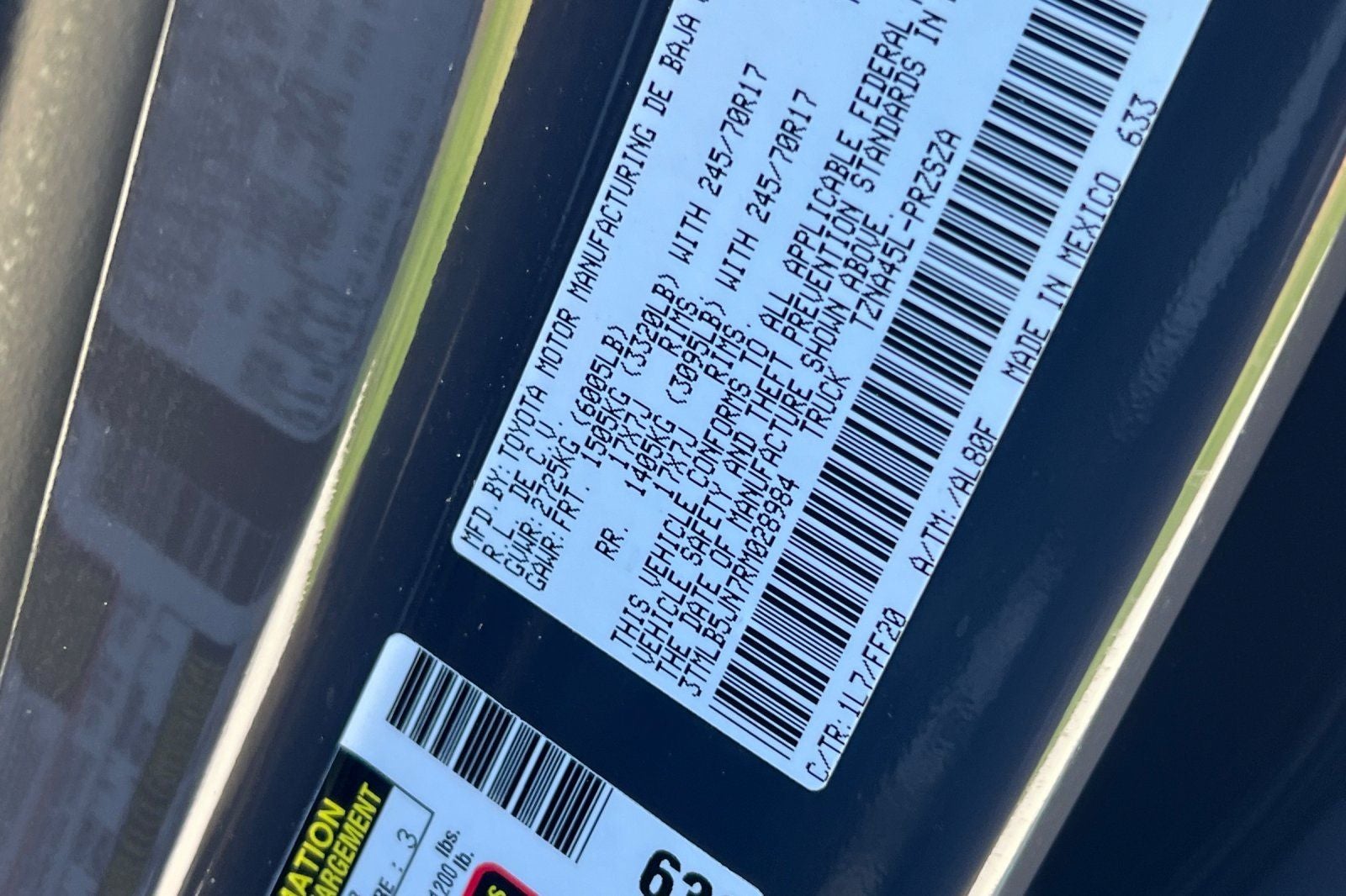 - Vehicle Name: Toyota Tacoma 4WD
